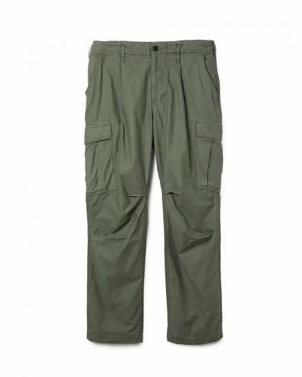 染色加工により風合いを出したバックサテン生地を使用した6ポケットトラウザーズ。ウエストとフロント膝部分、カーゴポケットにタックが入る立体的なシルエットが特徴です。
