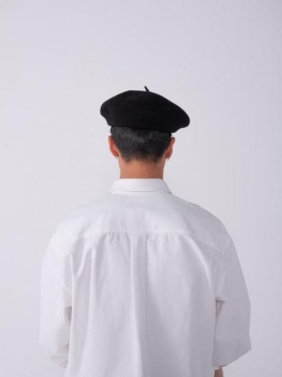 日本の帽子業界を牽引するメーカーの一つ『CA4LA』に別注したバスクベレー。高級なウールを使用し、シンプルに仕上げることでカジュアル、フォーマルなどシーンに関係なく幅広くコーディネートが可能。本体に打ったリベットもポイントの一つ。スベリ(汗とめ)にはパンチングレザーを使用し、裏側にサイズ調整のテープを配置。本体内側に今回のコラボレーションのためにデザインされた両者の名前が入った織りネームと高級感あふれる新しいネームを裏側天井に配置。