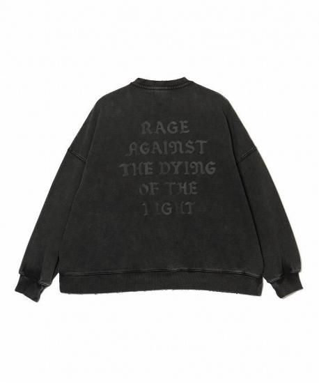特別な加工技術により、ヴィンテージ感を表現した身幅がワイドなクルーネックのスウェット。