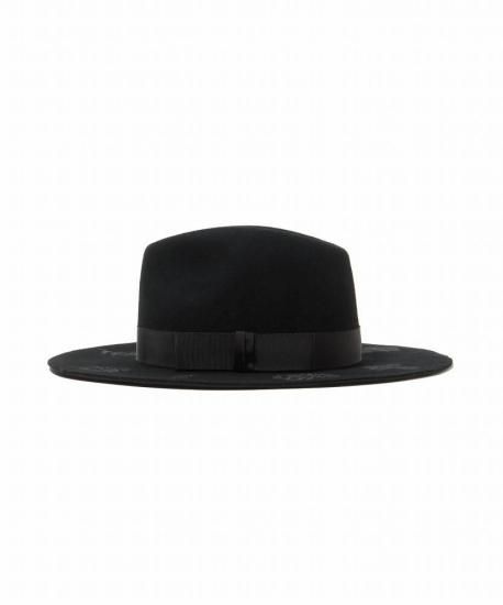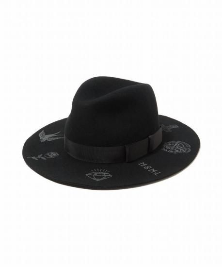 つばにオリジナルグラフィックをプリントしたウールハット。