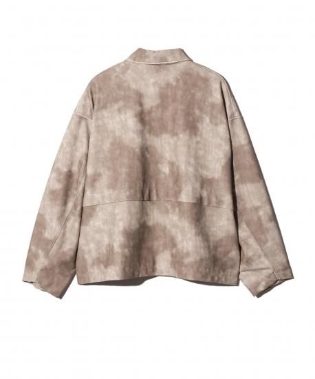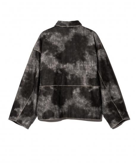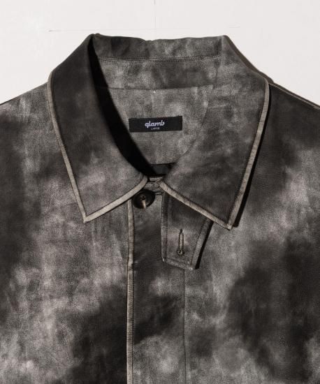 オーバーサイズのレザーブルゾンにウィットあるテクスチャを掛け合わせたOversize Synth Leather Blouson。テキスタイルに用いたのはワイルドなシボ感とムラあるカラーリングが個性を放つシンセティックレザー。仕上げに袖口などのエッジは手作業による薬剤の擦りを加えてアタリを刻んで本革さながらの質感を持たせつつ、防水性や防汚性といったデイリーユースに使い勝手のいい特性も兼ね揃えます。身幅と袖幅それぞれに非常にゆとりを設けたオーバーサイズのボディは、その輪郭を強調するよう前身頃は第一ボタンのみを覗かせた比翼仕立て。首元のチンストラップや袖口の2つボタン仕様など、スタイリングにアレンジを加えるディテールも随所に加えています。
