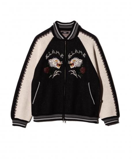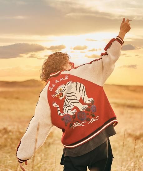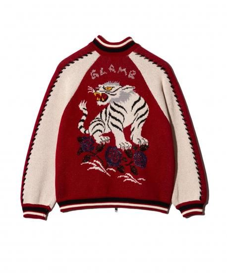 スカジャンパーをニットで再構築し、幻想が入り混じったかのルックスで人気を博したKnit Ska Jumperが新たな柄使いで今春も登場。ラグランスリーブのボディにジャガードであしらわれたのは中国の四神に数えられる白虎。それを取り囲むブランドロゴや植物柄のビーズ使い、そしてパイピングを模したアームのステッチは職人のハンドメイドとなっており、随所にクラフトマンシップ溢れる仕上がりとなっています。シルエットは身幅と着丈の双方をコンパクトにまとめたジャストフィッティング。アウターとしてはもちろん、カーディガン感覚でインナー使いも楽しめる1着です。