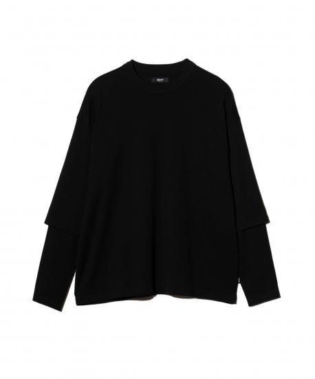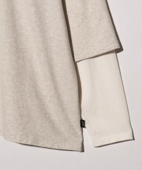 今春掲げるテーマ“Shadow of the Wind”の世界観をレイヤードスタイルに反映するBlow Layered Cutsew。フェイクレイヤードヴィジュアルはglambの得意とするディテールながら、本作ならではのディテールは7分袖のパーツ内側に配されたタブ。今季展開するストラップシリーズ“Blow”(*)を取り付けることが可能となっております。シルエットはドロップショルダーとワイドなフィッティングをかけ合わせたビッグシルエット。国内生産で作り上げた、程よい光沢としなやかな風合いを備えた40/2コーマ天竺のテキスタイルが上質な佇まいをもたらします。