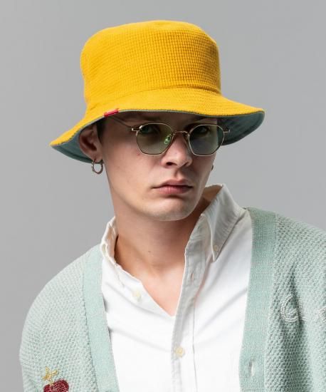 90’sストリートのムードを色濃く感じさせるバケットハットに意趣異なるリバーシブル仕様を持たせたReversible Bucket Hat。トップからブリム付け根までの傾斜を抑えた上品なボックス型のシルエットは、ブランド定番パターンをもとに国内工場で丁寧に形作ったものとなっています。ご注目いただきたいのはカラーバリエーションによって大きく異なるテキスタイル使い。Blackは逆面にアロハ柄をあしらって春から夏まで幅広いシーンに対応。日に焼けたような色合いのMustardは逆面に同じくアッシュがかったブルーグリーンの生地をあしらってカラーコーディネートを演出します。