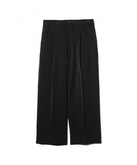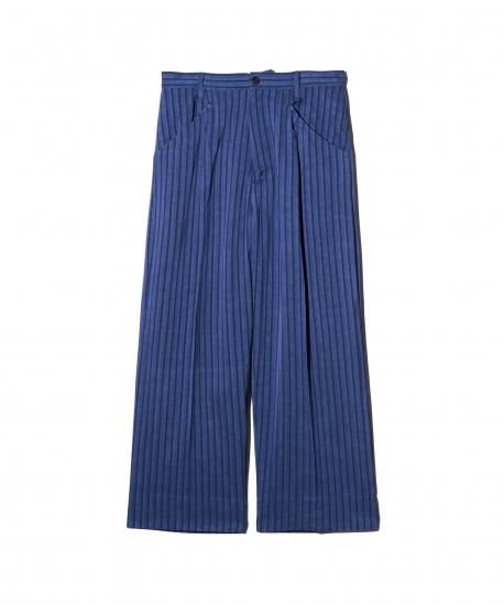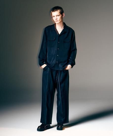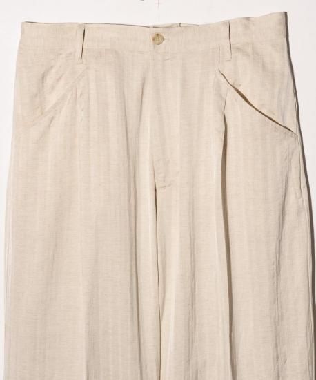 軽さと重厚さという相反する要素を意趣を凝らしたテキスタイルワークで同居させたStripe Jacquard Linen Pants。テキスタイルは3本取りのストライプとヘリンボーンを組み合わせて凹凸と陰影を持たせたジャガード生地。素材に40番手の細糸を用いることで奥行き深い柄の表現を実現しています。ボディは前身頃のポケット口から1タックを設けた立体感あるワイドシルエット。セットアップで展開となるStripe Jacquard Linen Shirtとスタイリングいただけばエレガントなリゾートルックが完成します。