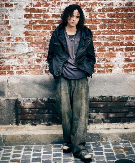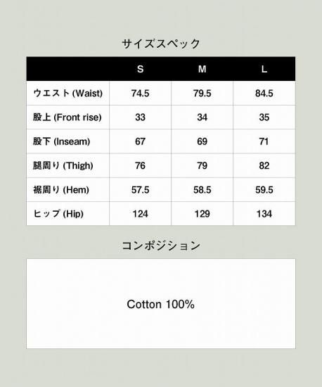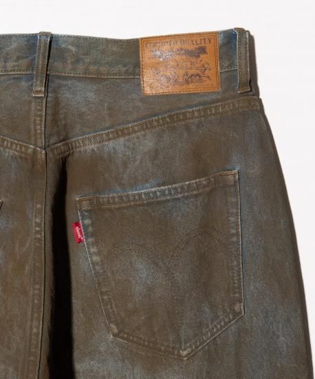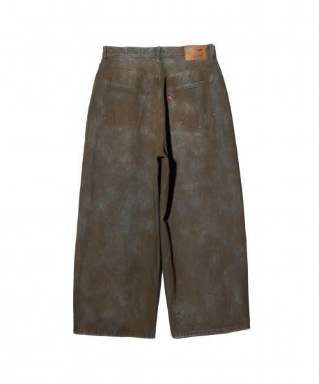 ブランドのクラフトマンシップを駆使してワークウェアの経年変化を大胆に拡大解釈、デニムの"汚れ"をアーティスティックに再表現したWhole Dirt Denim。glambのデニムに対する新たなアプローチが込められたのはボディ全体を隈なく覆う汚し加工。泥に似せて制作した特殊な樹脂を用いてデニム1本1本を職人が隙間なくコーティング。ウォッシュ加工を施して表面をこなれさせた後、熱処理仕上げで加工を定着させました。シルエットはハイウエスト着用も考慮して股上と股下にゆとりをもたせたバギータイプ。イージーな穿き心地も備えた本作は、穿き癖に応じて生じるコーティングのアタリも含めて末永くお楽しみください。