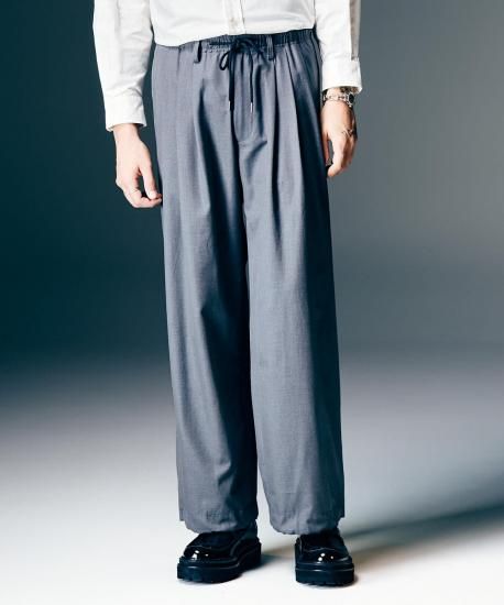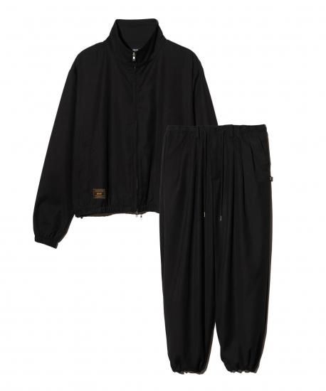 ドレスとスポーツをミニマルなルックスの中で掛け合わせたMonolith Track Blouson Set Up。テキスタイルに落ち感のあるレーヨンを含んだストレッチ生地を用いて仕立てました。ワイドシルエットのトップスは首元をハイネックにすることでアーバンな輪郭に。袖口や裾も小ぶりなギャザーを用いることでソリッドな印象をより強調しています。ボトムスは左右6本ものタックでバルーン状に構築したバギーシルエット。ウエストのドローコード仕様に加え、ゴム仕様の裾はスピンドルで幅調整が可能となっており、シチュエーションやコンディションに合わせて着心地をアレンジいただけます。