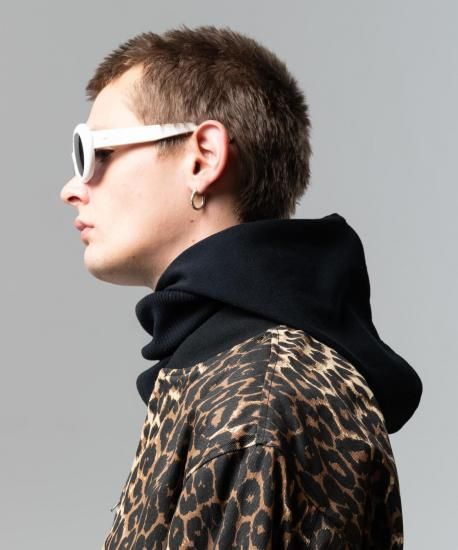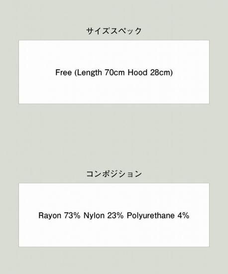 ストリートなフーディスタイルをアイテムを問わず実現するKnit Hoodie Snood。フードとスヌードが一体となったパターンでバラクラバシルエットを形成。ハイネックパーツは折り返して着用したり、首元にボリュームあるドレープを作ったりとスタイリングアレンジを可能にしています。ハイゲージで天竺編みした本体はシックなカラーバリエーションを引き立てる上質なテクスチャ。シルエットはタイトながらキックバックある素材をリブ編みにしてストレッチ性を持たせており、どなたでも快適にご着用いただけます。